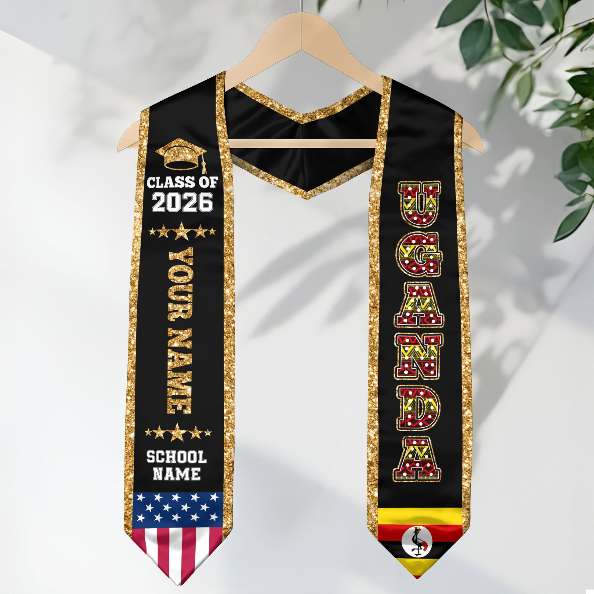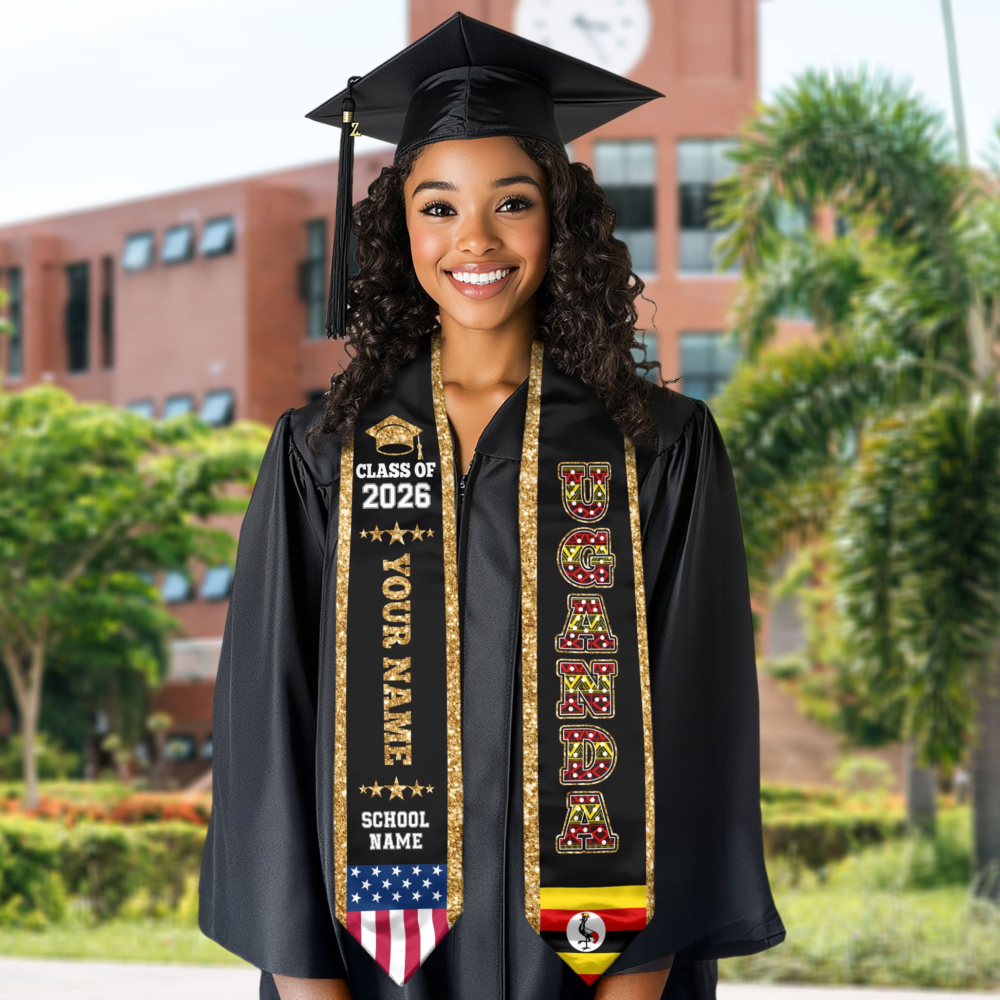 Uganda Graduation Stole 2026, Uganda Flag Sash, Personal Detail Option for Graduates